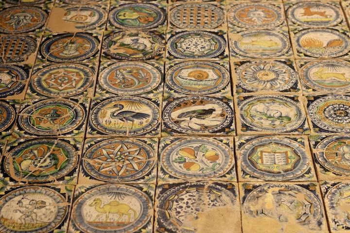 The mystery surrounding this colorful floor adds beauty to it. You can lean and observe the different motifs. Animals and birds, both fantastic and realistic, grotesque figures, geometric elements, flowers and fruits, human figures, inscriptions will hook your attention and you won’t leave quickly.
