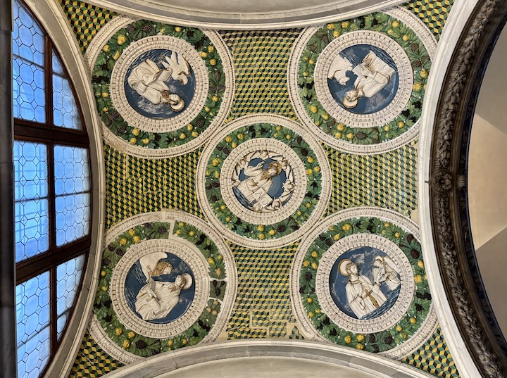 Della Robbia ceramics decorating the vault of the Martini Chapel in the church of San Giobbe with images of God the Father and the Four Evangelists, Venice, 1475