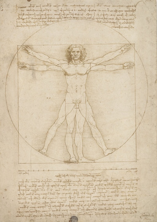 Leonardo Da Vinci, Study of the proportions of the human body, known as the Vitruvian Man, Venice Accademia Galleries, catalogue: 228