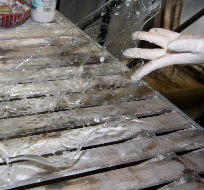Also, making a mirror proved to be a very unhealthy job. When the glass pane was laid down then another glass pane was placed on top and through a hole, liquid mercury was poured in between, pressed and spread all over the surface releasing dangerous exhalations.