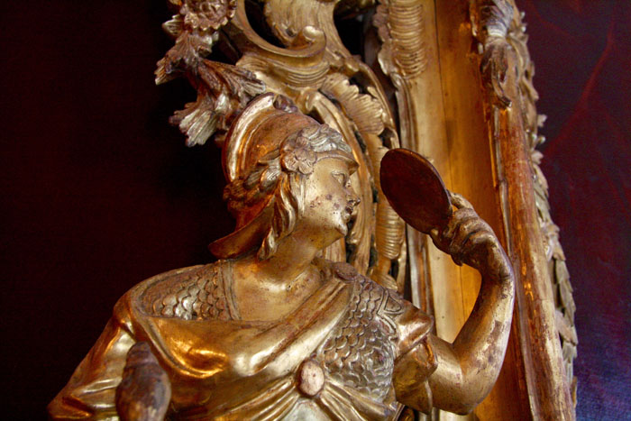 Or they would reflect, usually in the bedroom, the painted portrait of the owner, et voilà, what an exquisite idea, you can look at yourself in a mirror but you never grow old or look tired 🙂