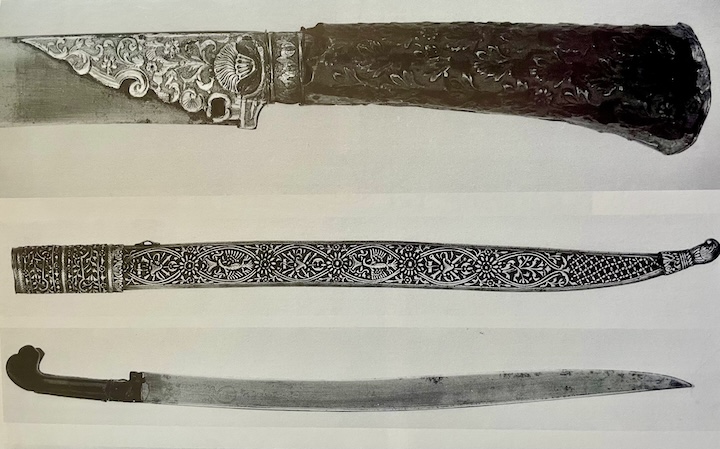 Kandjar, a type of dagger with a curved blade, beginning of 17th century, Persia; part of seven daggers now housed in the Armory of the Doge’s palace in Venice with hilts in brass or silver