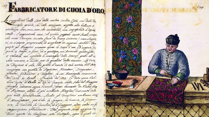 And have you heard of the “cuoridoro”, the famous painted and gilded leather used as wall paper for the luxury homes in Venice? Well, they were originally imported from Persia, but then Venetian craftsmen started making them, too, and they made them so well that they exported some back to Persia. Same story with book binding in leather.